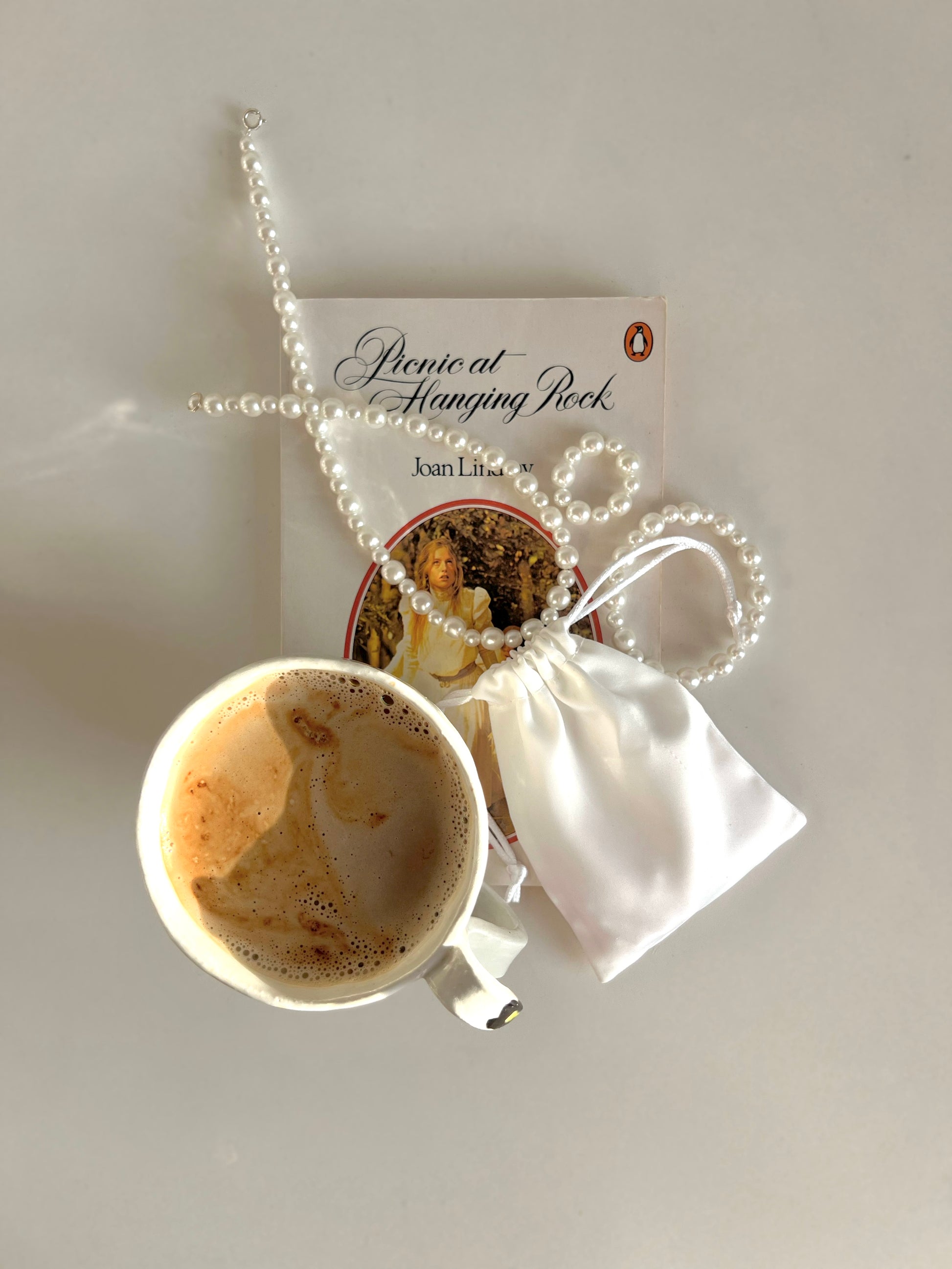 Elegant white jewelry set including a ring, bracelet, and necklace.